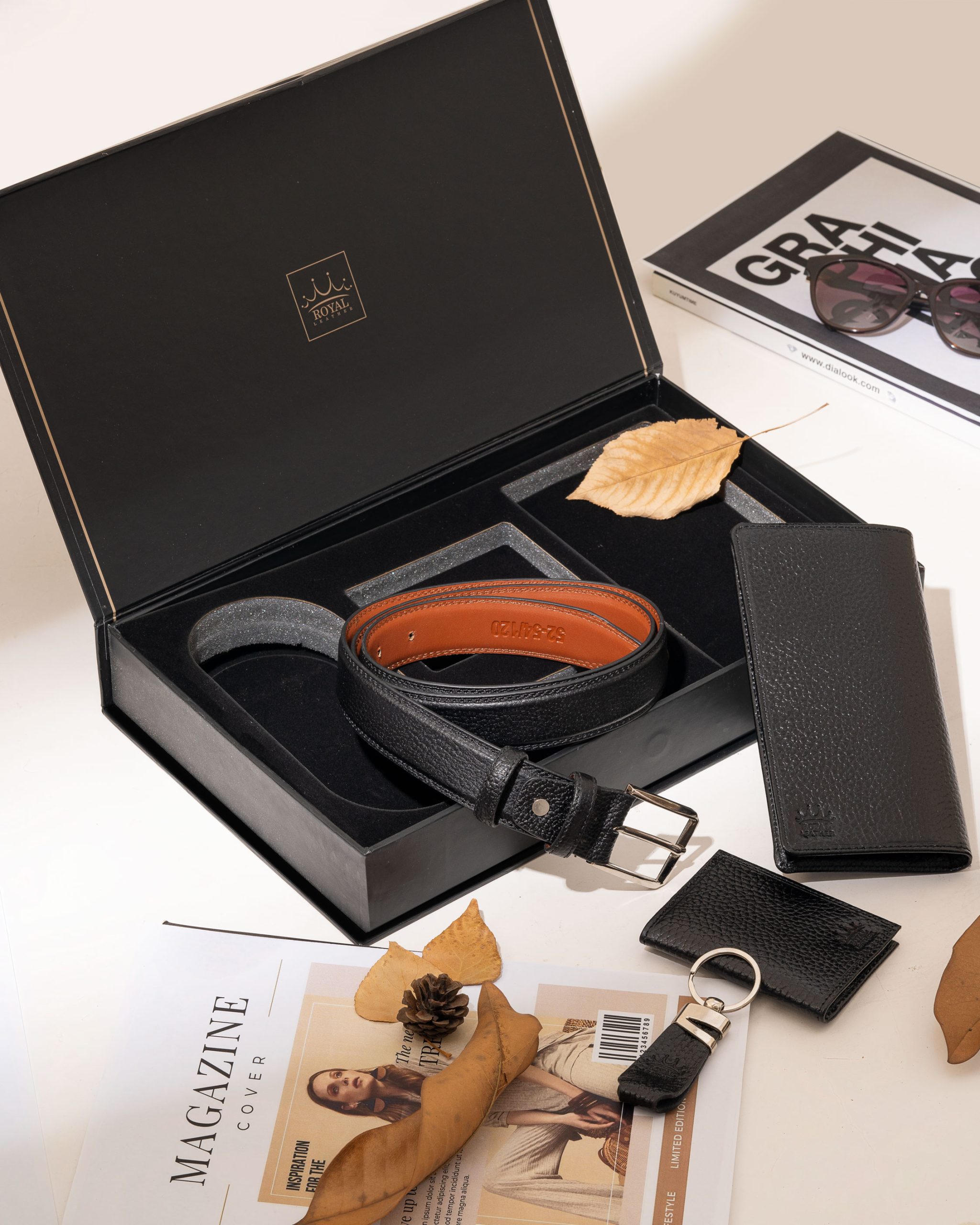 - ست هدیه چهار تکه مردانه رویال چرم