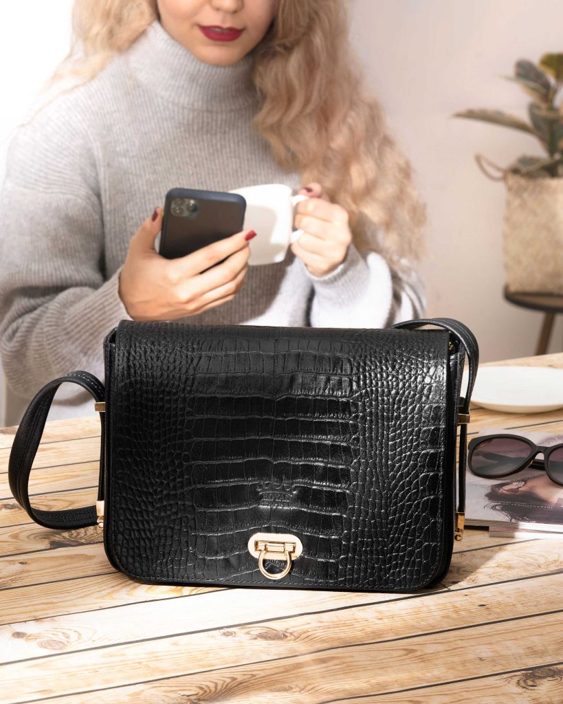 - رنگ کیف مشکی و طرح کروکو میباشد